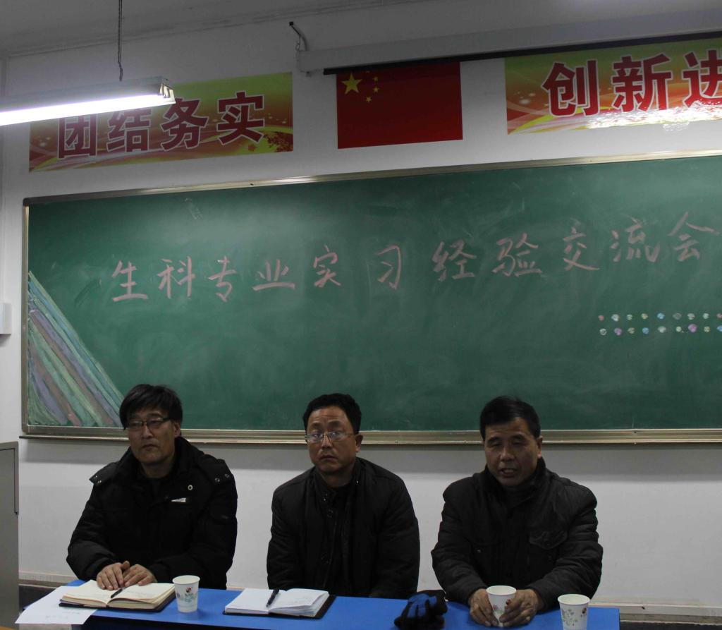 2014年12月22日晚七点,生物医药与食品工程学院在五号楼202教室举行“生物科学专业教育实习总结交流会”,张向东副院长、敬晓明副书记、生命科学系冀玉良主任以及各实习点参加实习的指导教师等参加了本次会议,会议由冀玉良主任主持。