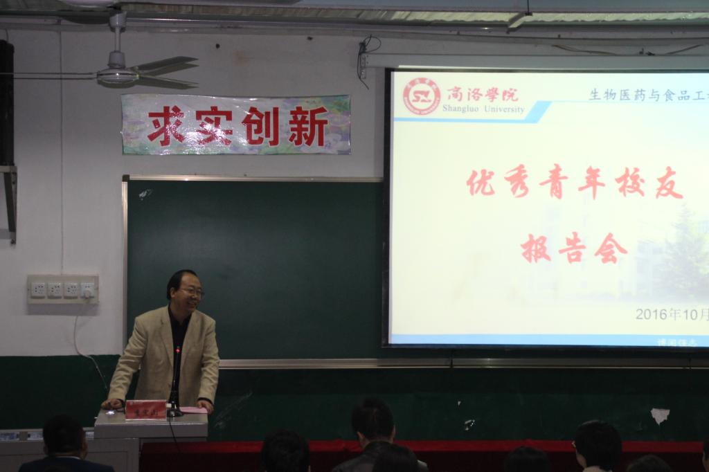 10月22日下午,生物医药与食品工程学院在五号楼多媒体13召开了优秀校友报告会。我院校友杨凌迪高维尔生物技术有限公司总经理李宏山、商洛福泰健康咨询服务有限公司总经理谈昭、浙江大学教师成娟歌、陕西师范大学在读博士李永丰分别从自己的成长经历和人生感悟出发,为全体在校学生作了一场内容精彩丰富、富含深情期盼的交流报告,激发了同学们的学习斗志、坚定了同学们科学规划大学生活,早日实现人生理想的信念。