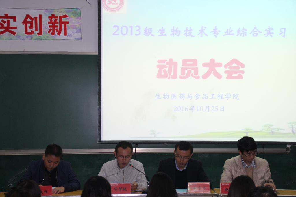 我院2013级生物技术专业综合实习动员大会于10月25日在五号楼多媒体13召开。华智锐老师、赵永平老师、赵志新老师和苏铁柱老师出席了本次会议。会议由华智瑞老师主持。